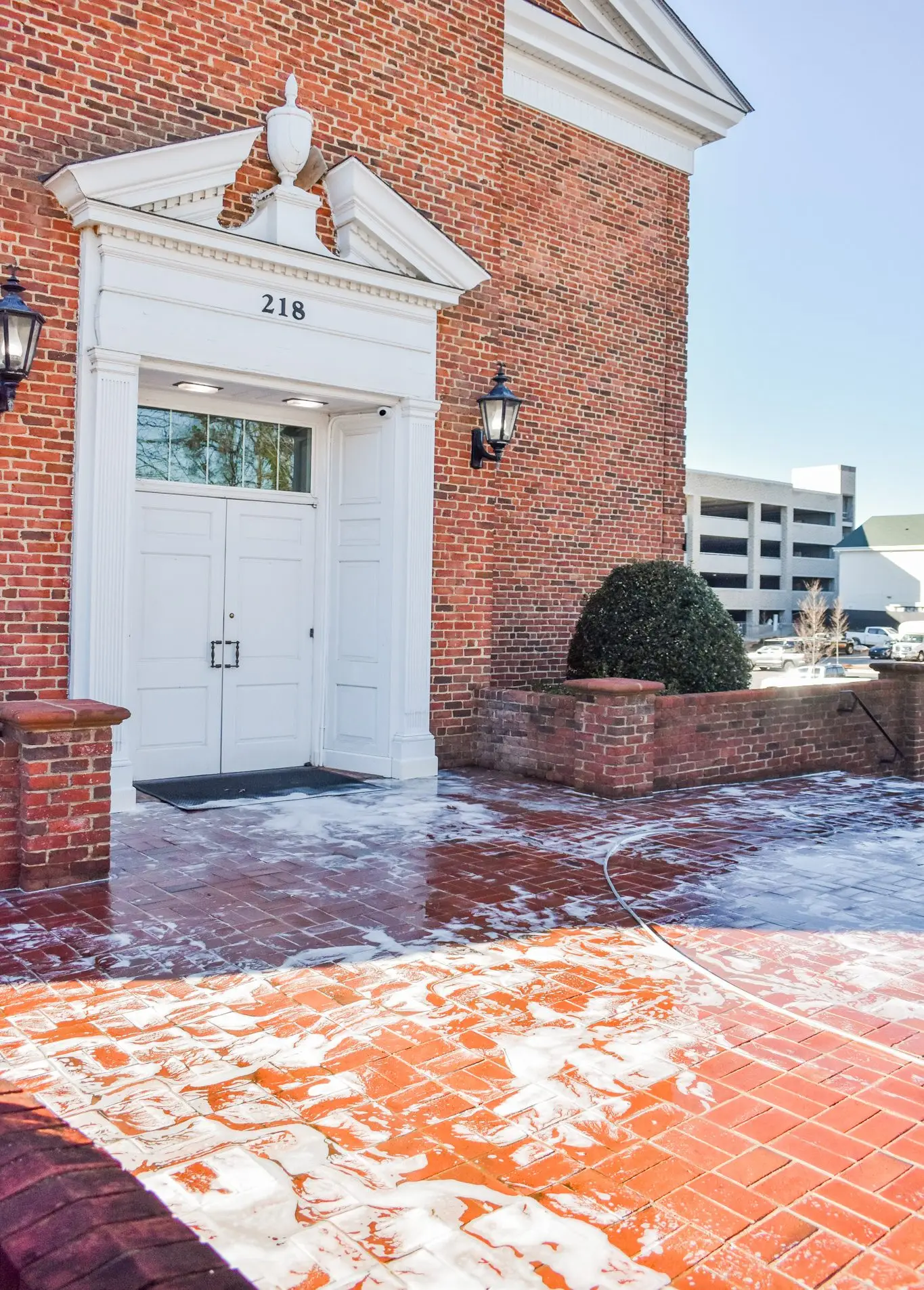 Brightening treatments remove organic staining, atmospheric discoloration, and embedded residue from brick and stone. We assess each surface to select the correct strength and chemistry, ensuring safe application without altering masonry color. This enhances stonework visibility and restores architectural definition.