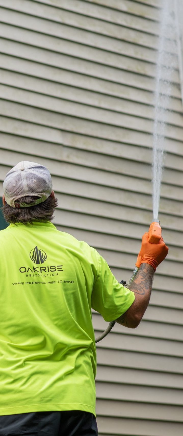 OakRise delivers specialized exterior cleaning for commercial and multifamily properties — safely renewing building facades made of EIFS, brick, stucco, fiber cement, and other materials. Our methods combine controlled pressure, soft-wash chemistry, and field-tested safety systems to restore surfaces without damage.
